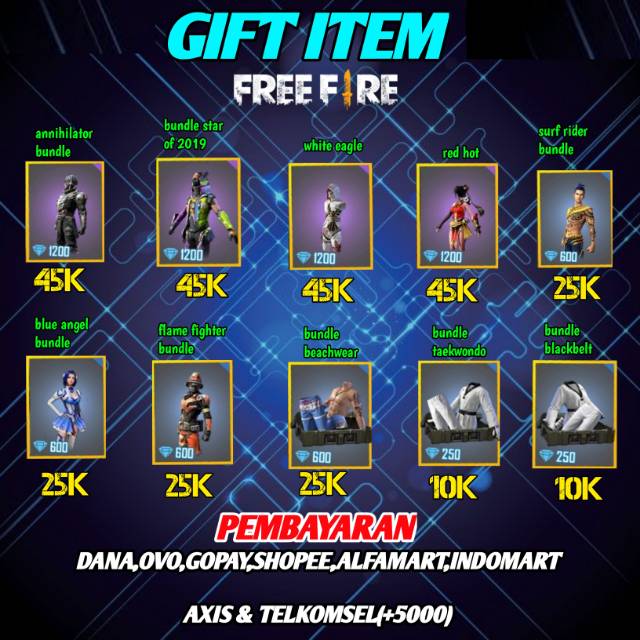 It provides customers with an easy secure and fast online shopping experience through strong payment and logistical support. Shopee has a wide selection of product categories ranging from consumer electronics to home living health beauty baby toys fashion and fitness equipment. Sila baca reviewconfirm happy ending guys joy buyer please jangan lock knitwear bundle murah2 ini adalah item bundlefussy buyers pun please jangan lockbaju koyak kami siap asingkanberbulu sikit is normal ini adalah bundle yabundle lover confirm dah biasa. Jam pengiriman gift senjata atau bundle. Bocil free fire top up 100000 diamond di alfamart free fire give bundle alok flores gaming budi01 gaming budi01. Gift bundle semua yang ada di menu hadiah yang bisa di gift free fire jika tidak ada di toko kami silakan bisa langsung chat saja.