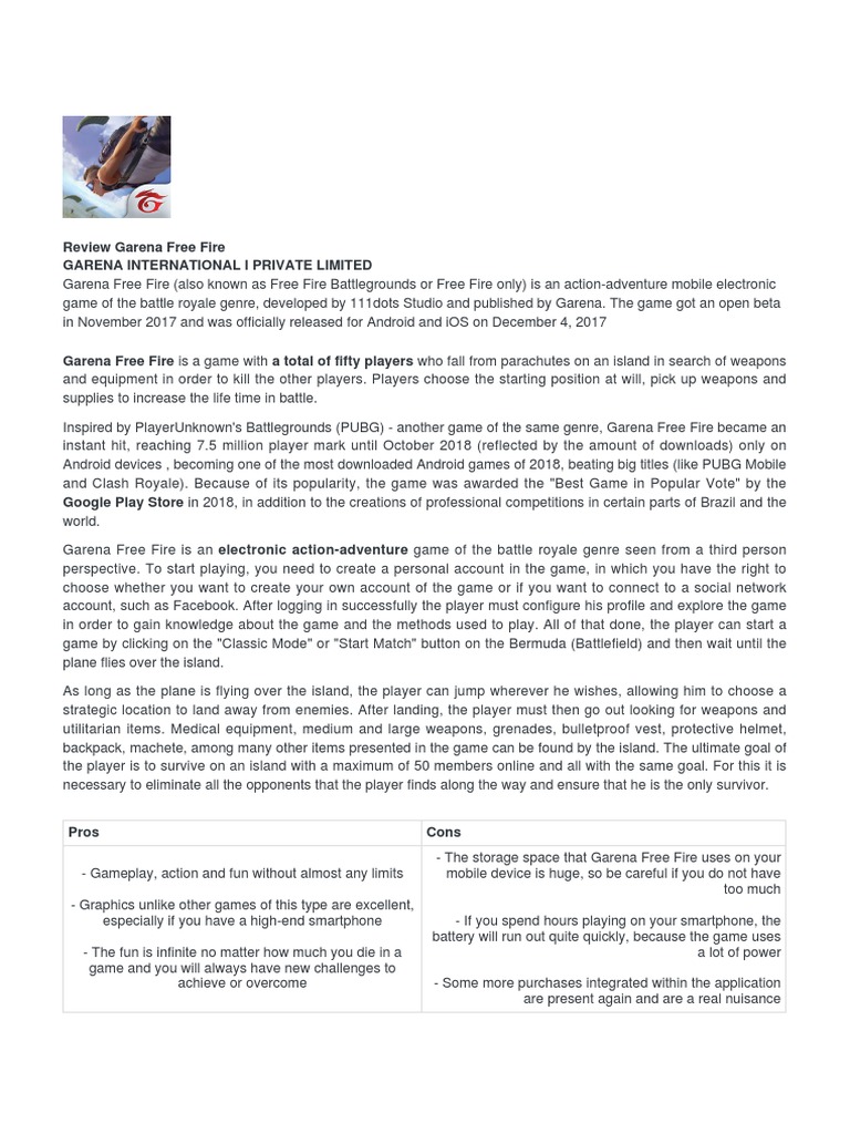 Free fire battlegrounds 111dots studio. Trick shots from level 1 to level 100 duration. It is the number one mobile game in over 22 countries and is among the top 5 games among 50 countries. Drive vehicles to explore the vast map hide in trenches or become invisible by proning. Garena is a global online games developer and publisher headquartered in singaporegarena was founded in 2009 by forrest li and is the digital entertainment business under the parent company sea limited aka sea group which was formerly called garena. Free fire is the ultimate survival shooter game available on mobile. Grab weapons to do others in and supplies to bolster your chances of survival.