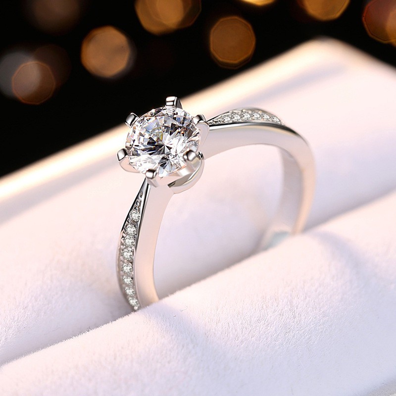 Cincin Pertunanganpernikahan Desain Snowflake Hias Berlian Asli Untuk Wanita
